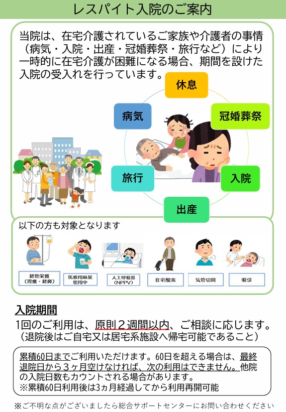 - 地域からの転院・レスパイト入院の相談・受け入れ対応